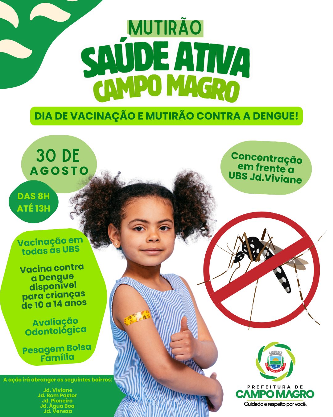 A Prefeitura de Campo Magro, por meio da Secretaria Municipal de Saúde, promove uma nova edição do Mutirão Saúde Ativa. A ação, focada na vacinação contra a Dengue, acontece neste s&aacut...